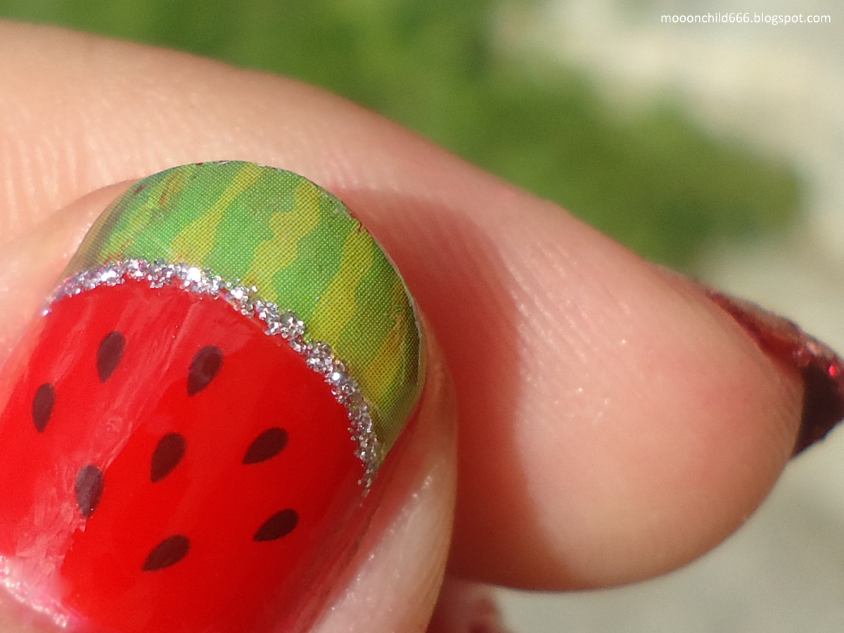 The decals were obviously super easy to apply, didn't cause me any trouble and are super fun looking! I just wish I had worn them back in summer, with a matching cocktail in my hands. :D They did however "lift" ad the edges a little bit when I applied TC, but perhaps that's TC's fault. You can find these particular Watermelon Pattern Nail Water Decals [HERE] or browse trough their entire selection [HERE]. I totally recommend you to get some of these, they are honestly the easiest way of nail art ever! ;) And remember, using the coupon code MOONCHILD666 gets you an additional 10% discount on your purchase. ;)