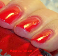 So anyway, now that I know how to use the glue and foils as they were properly intended... here's my review ofRed Laser Pattern Nail Foil Transfer, item number NNAIL-E01. For this manicures, I used the foil, the glue and Chrome Girl Heartbreaker.